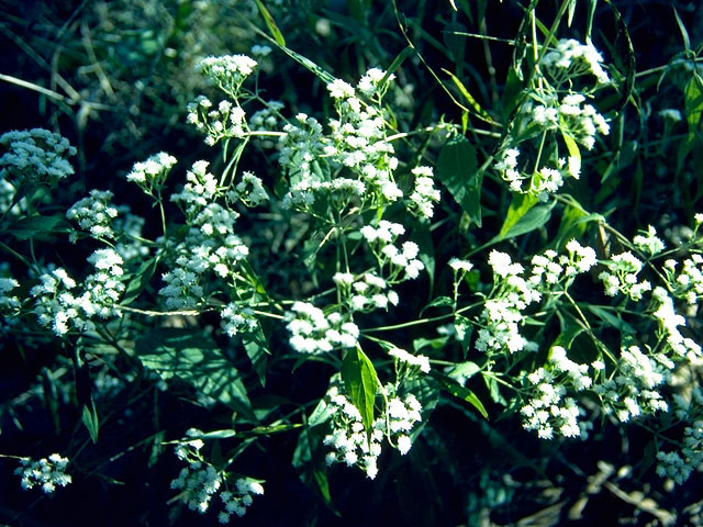 White snakeroot (Ageratina altissima), a native plant, causes a disease called milk sickness, which took the lives of many pioneers, including Abraham Lincoln's mother. Photo courtesy www.wildflower.org
