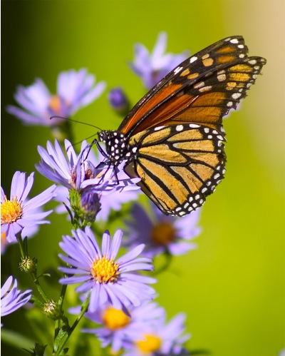 - New England asters (Symphyotrichum novae-angliae) because these perennials bloom in September and October and provide nectar for bees and migrating butterflies.