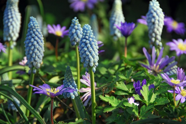 Minor bulbs include Siberian squill (Squill siberica), glory-of-the-snow (Chionodoxa), snowdrops (Galanthus), grape hyacinth (Muscari), Iris reticulata and Crocus.